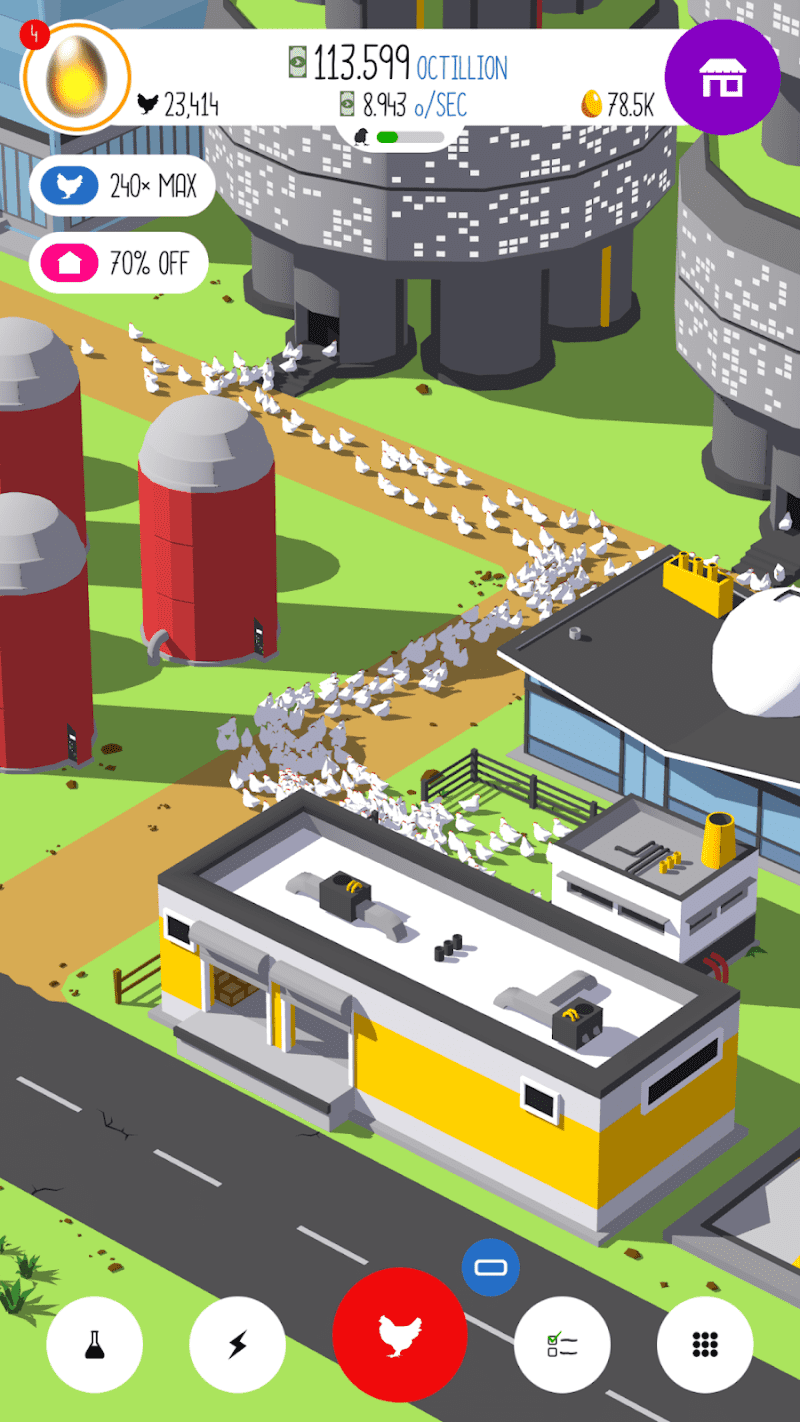 Egg, Inc. is a simulation and idle clicker game where players manage a chicken farm, focusing on hatching eggs and building a poultry empire. The game has an addictive quality, as players collect resources, upgrade their farms, and increase their egg production. Players can unlock various types of chickens, including special ones that provide bonuses, and expand into different types of farms like hatcheries and research labs. The game includes a balance of active and passive play, where tapping to produce eggs leads to incremental progress, and automation allows you to progress while offline. Egg, Inc. features charming, colorful graphics and a lighthearted tone, making it accessible to players of all ages. The progression system is engaging, though it can feel slow without spending money on upgrades. Overall, it鈥檚 a fun, relaxing, and somewhat addictive idle simulator that appeals to fans of resource management games.