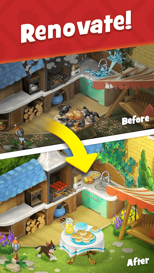Gardenscapes is a captivating match-3 puzzle game developed by Playrix, where players are tasked with restoring a neglected garden to its former glory. The gameplay involves solving match-3 puzzles, swapping adjacent tiles to create matches of three or more identical items, which rewards you with coins and stars. These resources are then used to renovate different parts of the garden, such as planting flowers, fixing fountains, and uncovering hidden items.