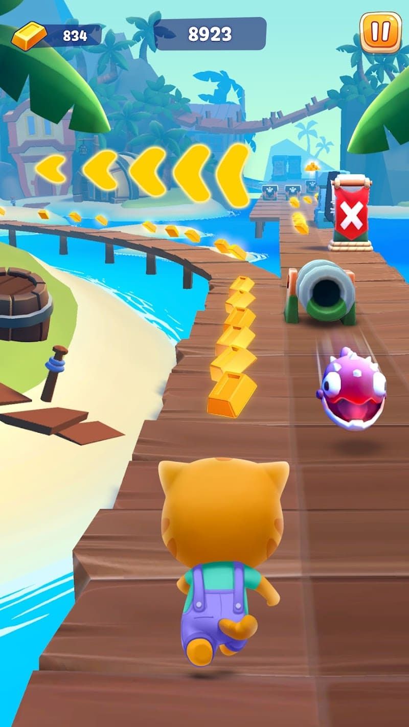 Talking Tom Gold Run 2 is the highly anticipated sequel to the popular endless runner game Talking Tom Gold Run. In this game, players control Tom as he embarks on a thrilling chase to catch the robber who stole his gold. The gameplay is fast-paced and involves running through various dynamic environments, dodging obstacles, and collecting coins to upgrade Tom's skills. One of the standout features in Gold Run 2 is the wide range of unlockable characters, each with unique abilities. As you progress, you can unlock new outfits and skins for your characters, adding an extra layer of customization. The graphics are vibrant, and the environments are diverse, keeping the gameplay fresh. In-app purchases are available, allowing players to speed up progression, but they are not essential to enjoy the game. Overall, Talking Tom Gold Run 2 offers a fun, addictive experience, perfect for fans of endless runners.