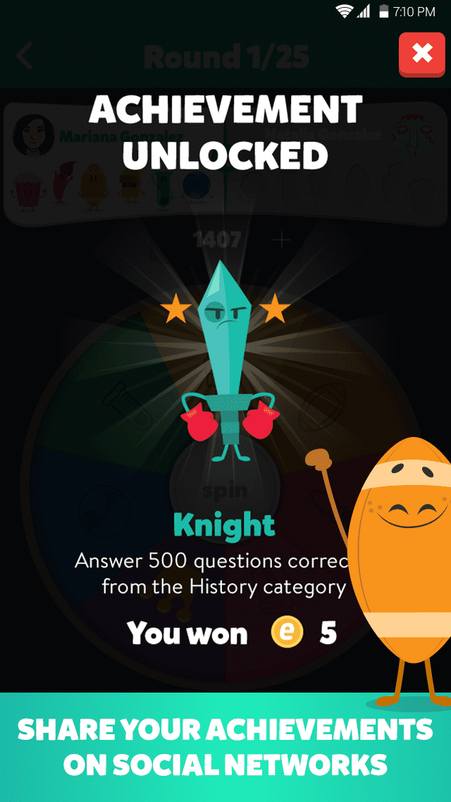 Trivia Crack is a fast-paced quiz game where players answer questions across various categories such as science, geography, history, entertainment, and more. The goal is to collect characters by answering questions correctly in each of the six categories. Players can compete against friends or random opponents, and the winner is the first to collect all six characters.